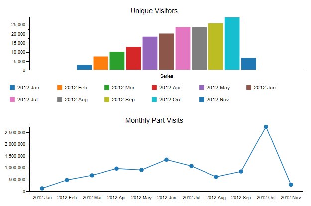 Chart Builder component allows you to add ad-hoc reporting capabilities in your application. User can now do multidimensional reporting and can create their customize chart. Chart Library allows you to pick from the different chart types that are available. You can export charts in PDF, excel and CSV format. By mapping individual customer dimensions to global dimensions, we did comparative analysis for different customers